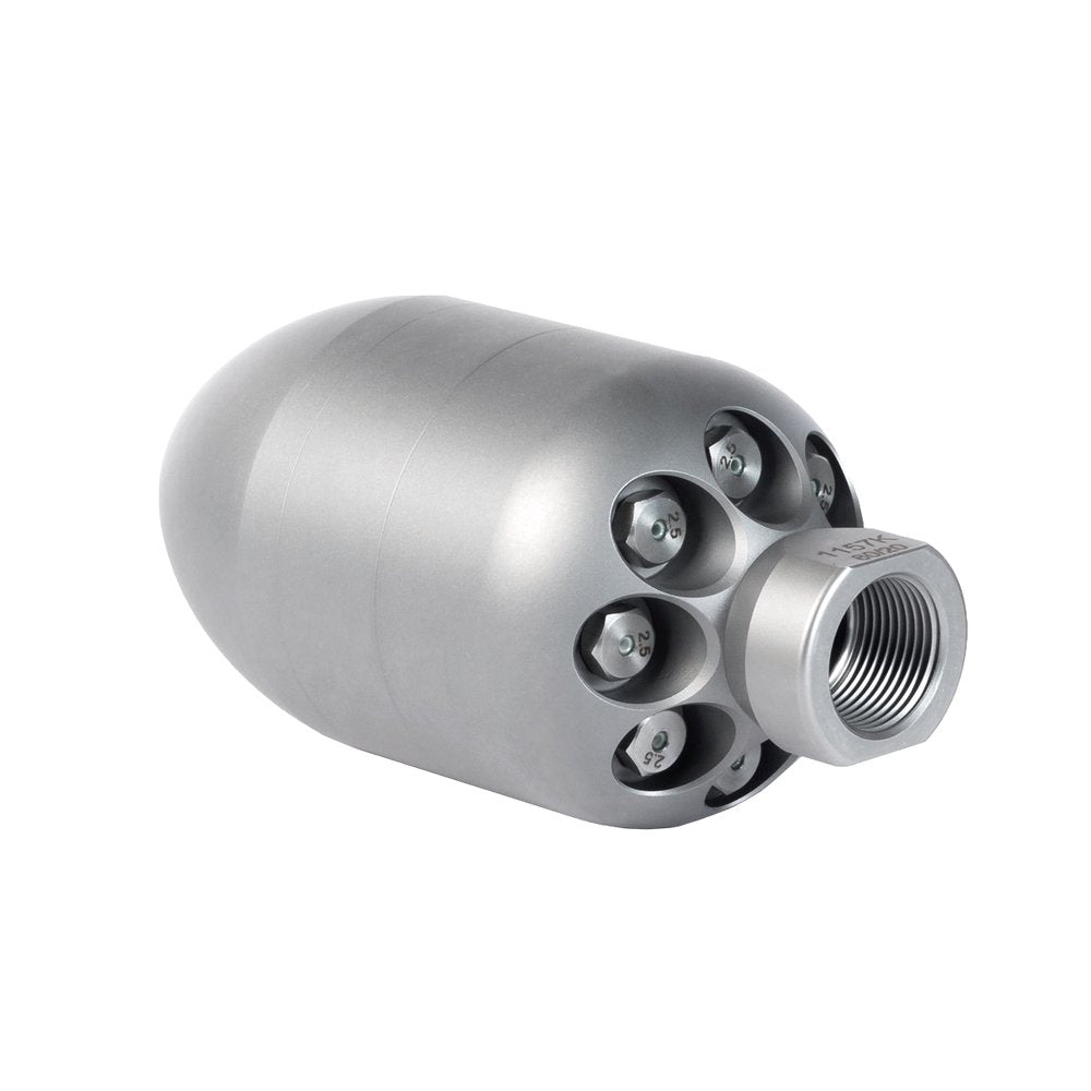 Much like a rocket, this nozzle has serious power behind it! The tight spray angle combined with the one piece-ceramic inserts and 3D fluid mechanics produce incredible results. Constructed from hardened stainless steel, the powerful jet pattern created by the Rocket nozzle 3D can flush dirt/mud, rocks, and any other large heavy material you may find in sewer or storm pipes.
